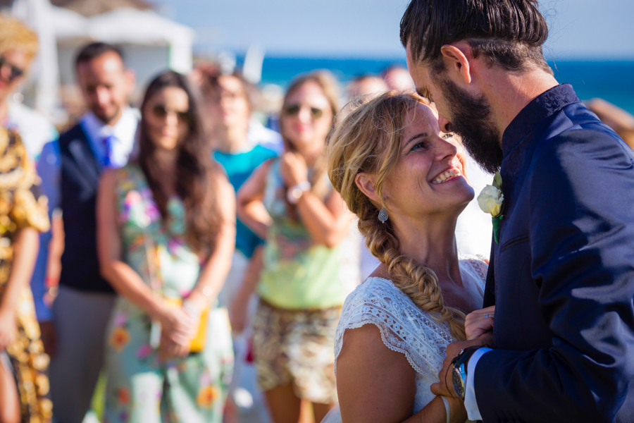 Como os contamos en su preboda, Lara y Juanki son unos enamorados de la playa y sus atardeceres. No es de extrañar entonces que para celebrar su boda civil eligiesen el restaurante Sirocco en la playa de Bolonia (Cádiz).